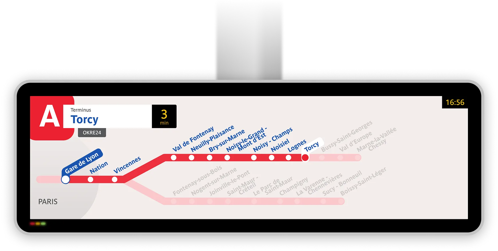 Une reproduction fidèle des écrans d'information voyageur en gare RATP et SNCF.